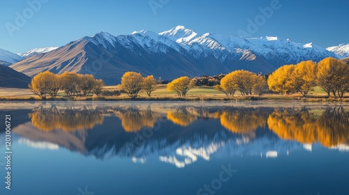 © Penatic Studio, Obraz premium Autumnal Trees Reflecting In Calm Mountain Lake