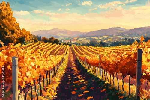 © arri, Naklejka premium Autumnal Vineyard Pathway Scenic Landscape View