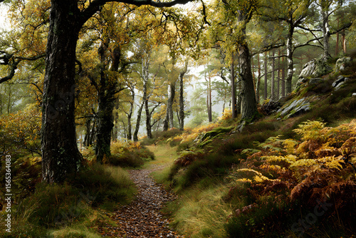 © Daniel, Fototapeta premium Autumnal woodland scene in the highlands
