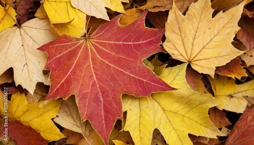 Fototapeta premium Autumns vibrant palette in a pile of fallen leaves