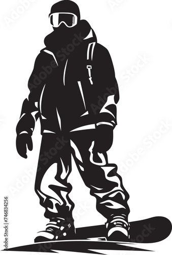 © BABBAN, Fototapeta premium Avalanche Ace Vector Logo with Snowboarding Man Graphic Frosty Freerider Snowboarding Man Logo Design