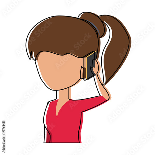 Obraz premium avatar Woman Talking on Cellphone over white background, colorful design. vector illustration