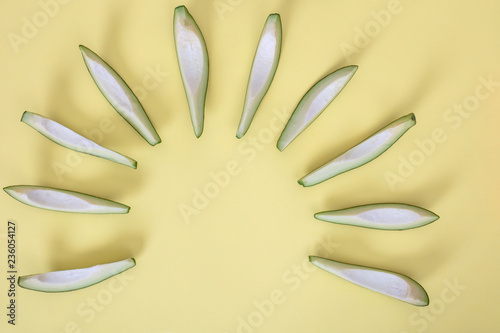 Fototapeta premium Avocado slices isolated on yellow background