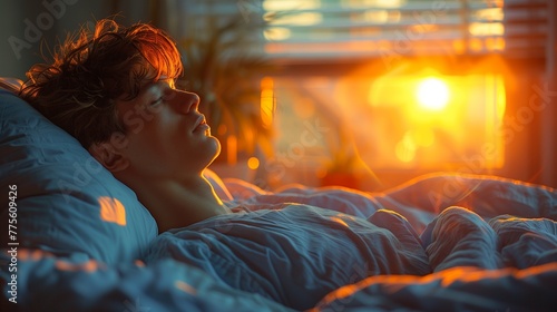 Obraz premium Awakening gently as dawn breaks, the person embraces the new day with refreshed vigor