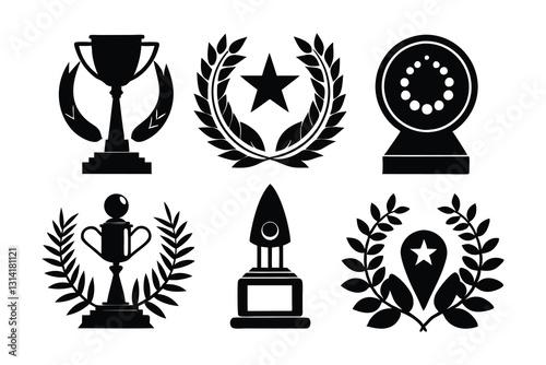 Obraz premium Award set Icons in Simple Black and White Silhouette Style