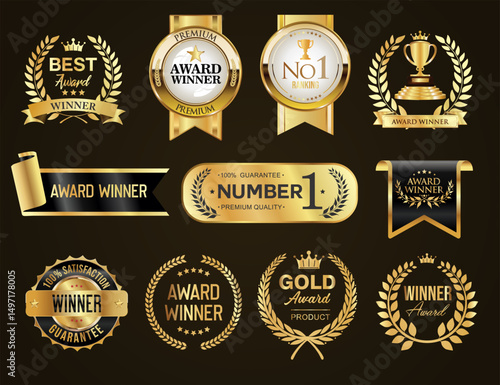 Fototapeta premium award winner and top rated golden badge and emblem collection stock illustration