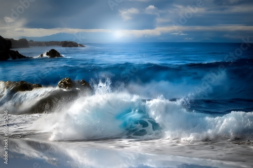 Fototapeta premium 시원한- 푸른 바다 파도(Awe-inspiring blue waves, Blue sea waves, Ocean waves of blue)