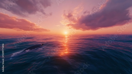 Naklejka premium Aweinspiring Sunset Encounter with Whales