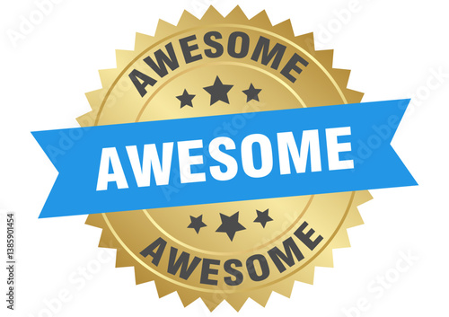 Obraz premium awesome. awesome round blue and gold label isolated on transparent background