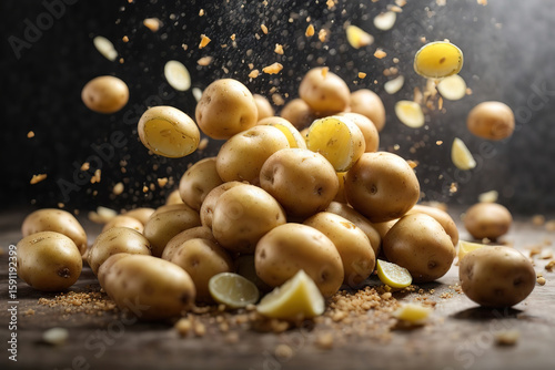 © Abdul, Naklejka premium Awesome Falling fresh potatoes isolated on transparent or white background