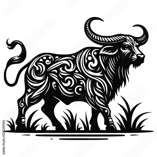 © Johan, Obraz premium Awesome Flat Vector Buffalo Design Generative AI