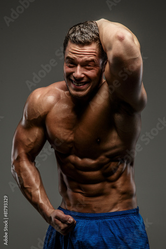 © Fxquadro, Fototapeta premium Awesome muscular guy on grey background