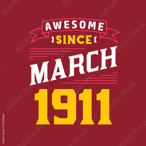 © Stockia, Obraz premium Awesome Since March 1911. Born in March 1911 Retro Vintage Birthday
