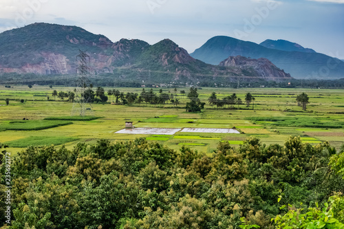 © Maayyaank555, Fototapeta premium awesome view of paddy farming with mountain in day time.
