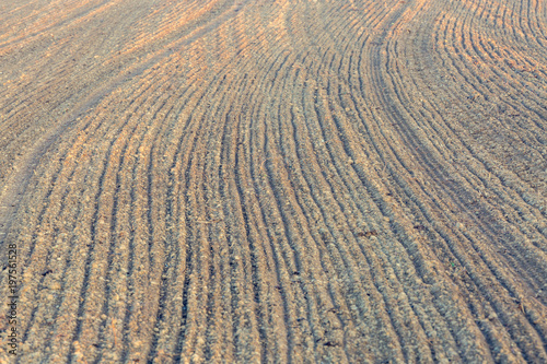 © rzoze19, Naklejka premium Awesome view of plowed farmland. Autumn dawn in pastel colors. Agricultural themed background.