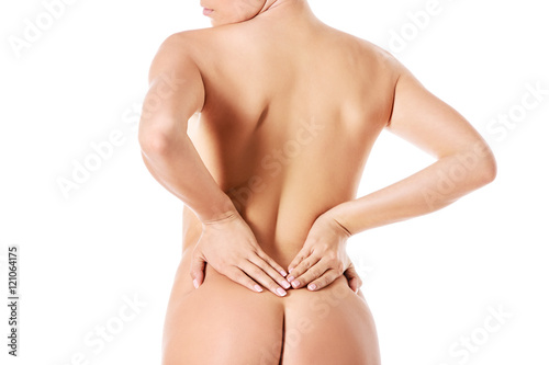 Naklejka premium Awful backache, isolated, white background.