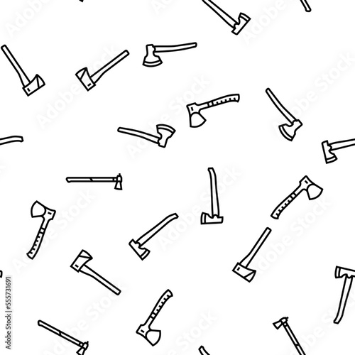 © vectorwin, Fototapeta premium axe ax hatchet wood weapon vector seamless pattern thin line illustration