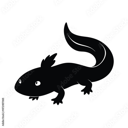 © SanoarH, Fototapeta premium Axolotl unique aquatic salamander black silhouette vector image on white background