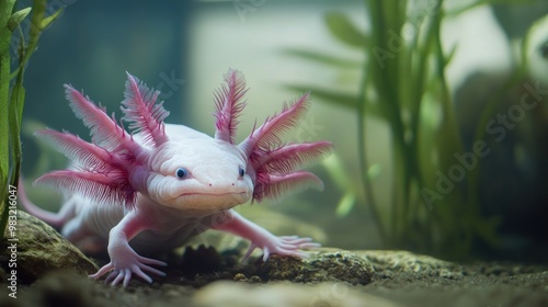 Obraz premium Axolotl with Pink Gills in an Aquarium