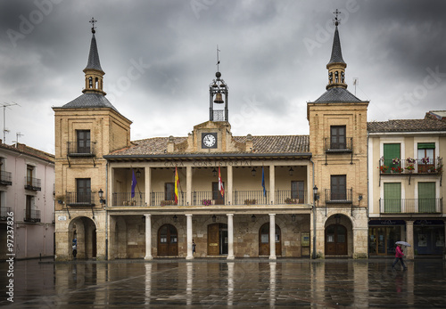© Jorge Anastacio, Fototapeta premium Ayuntamiento Burgo de Osma on a rainy day, Soria, Spain