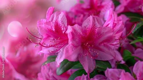 Fototapeta premium Azalea Japonica Flowers: Purple Splendor Macro - Blurred Background with Copy...