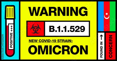 Fototapeta premium Azerbaijan. Covid-19 New Strain Called Omicron. Found in Botswana and South Africa. Warning Sign with Positive Blood Test. Concern. B.1.1.529.