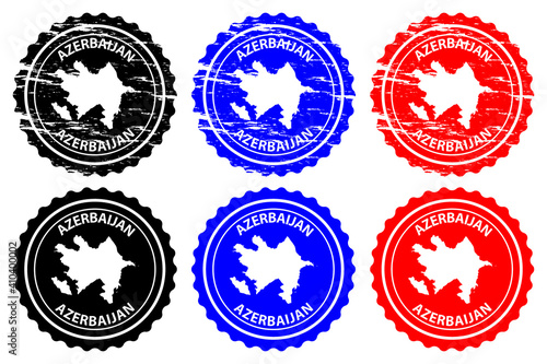 © danlersk, Obraz premium Azerbaijan - rubber stamp - vector, Azerbaijan map pattern - sticker - black, blue and red