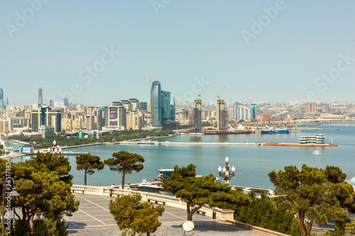 © HAMERCAT, Naklejka premium Azerbejdżan, Baku, panorama miasta. Miejsca turystyczne do spacerów wzdłuż brzegu Morza Kaspijskiego. Architektura starego i nowego miasta. Bez ludzi