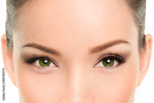 © Maridav, Fototapeta premium Azjatycka piękno kobieta jest ubranym kota oka smokey oczu eyeliner makeup i tusz do rzęs z zielonymi oczami. Zabieg laserowy, chirurgia plastyczna powiek przeciwstarzeniowych.