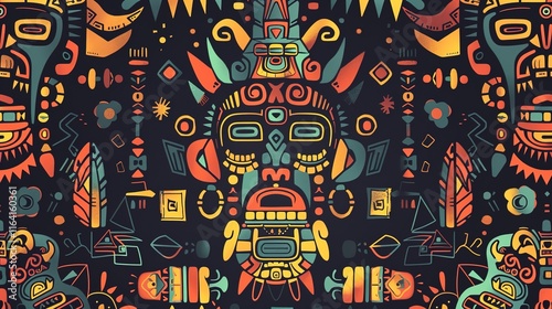 © pixelwallpaper, Obraz premium aztec seamless pattern wallpaper