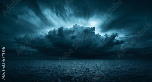 Fototapeta premium Azure Abyss. A Confluence of Sea and Sky Under a Tempestuous Twilight.