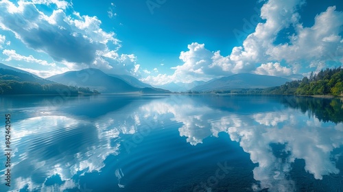 © Fokasu Art, Fototapeta premium Azure clarity of a sky reflecting in a calm lake
