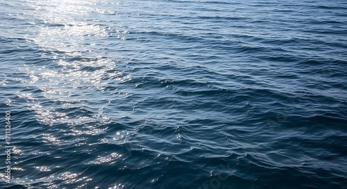 Naklejka premium Azure expanse Sunlight dances on serene water's surface, creating shimmering...