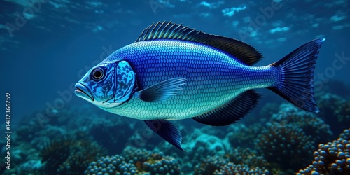 © chaowalit, Naklejka premium Azure Fish Swimming Gracefully in Underwater Scene
