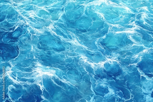 Fototapeta premium Azure ocean surface, dynamic waves, light-blue hues, detailed texture,...
