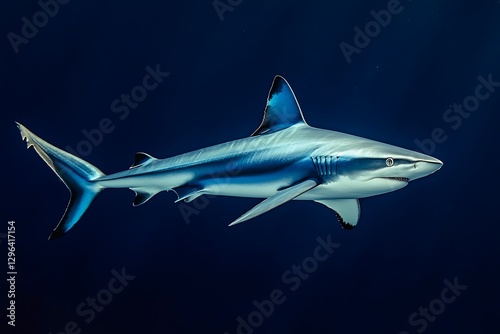 Fototapeta premium Azure Predator: A sleek blue shark glides effortlessly through the deep,...