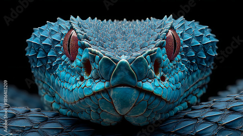Naklejka premium Azure serpent with crimson eyes and textured scales blue snake viper