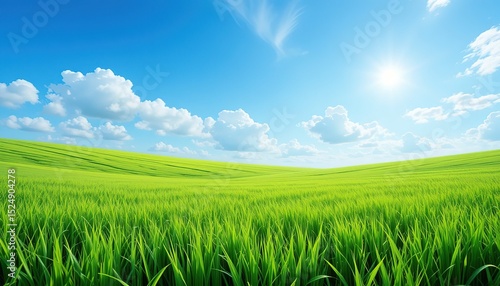 Fototapeta premium Azure Sky Over Lush Green Meadow Landscape