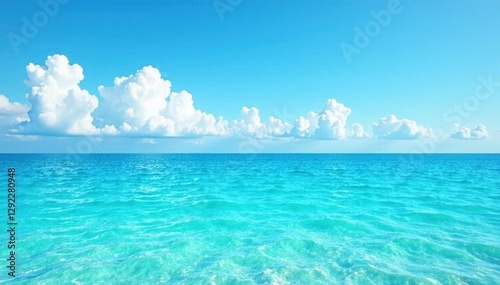 © Thitipa, Fototapeta premium Azure sky, turquoise ocean; calm waves, seamless horizon , sunny, tranquil