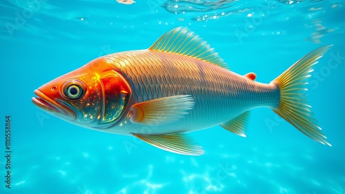 Naklejka premium Azure Water Fish, Stunning Landscape, Beautiful Underwater Scene, Ocean,...