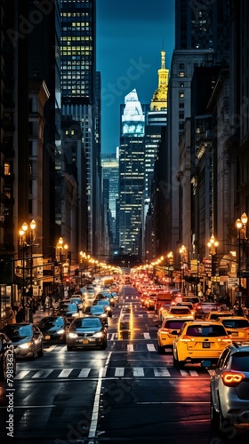 Naklejka premium b'A long road with cars and buildings on both sides'
