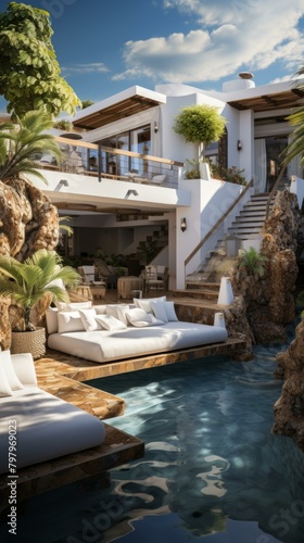 Fototapeta premium b'A stunning modern villa with a pool and a beautiful view'