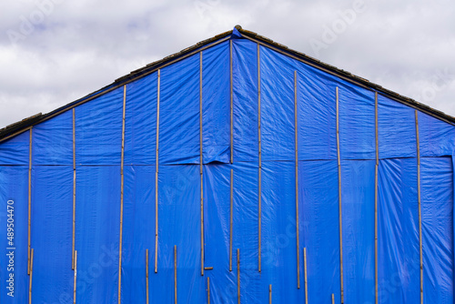 Fototapeta premium Bâche couvrant le mur pignon d'une maison ancienne
