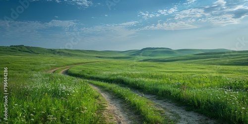© Adobe Contributor, Fototapeta premium b'Dirt road through a green hilly field'