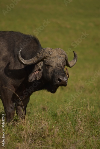 © Jair, Obraz premium Búfalo con ave desparasitadora en la cara
