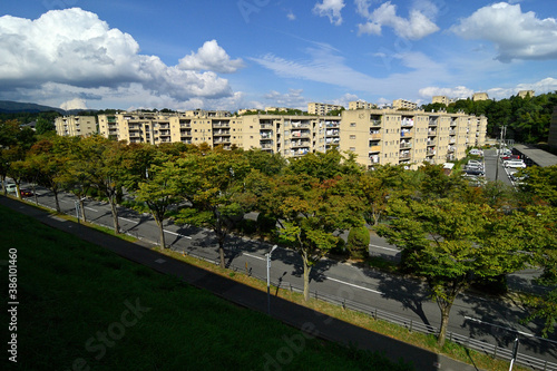 Fototapeta premium 千里ニュータウン藤白台(大阪府吹田市)の府公社藤白台B団地・千里丘陵G団地