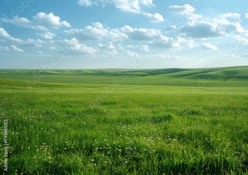 Obraz premium b'Green rolling hills under blue sky and white clouds'