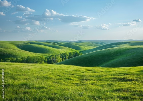 Fototapeta premium b'Green rolling hills under blue sky with white clouds'