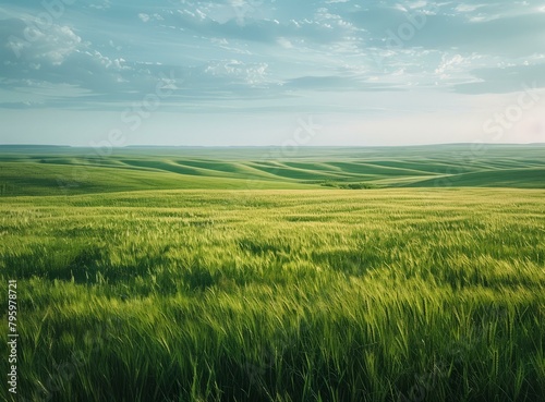 Fototapeta premium b'Green wheat field under blue sky and white clouds'