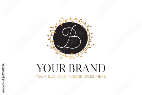 Fototapeta premium B Initial Letter Black and Gold Floral Hand Drawn Brand Logo